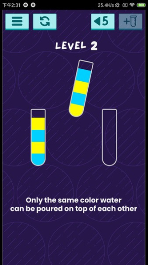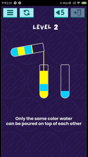 1.玩法益智有趣:核心玩法是分类和排序有色液体,将同色归于一处的过程,既锻炼逻辑思维又充满闯关乐趣。