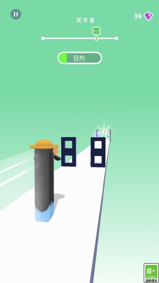 4、处于 “狂热” 状态关卡时,遇到不同颜色的门框障碍,需让果冻角色匹配对应颜色。
