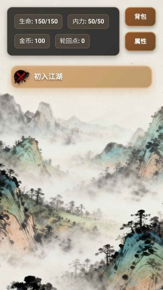 1、单局轮回中挑战各路武林高手与随机江湖事件,通过战斗胜负与抉择获取修为、悟性和武学残章;