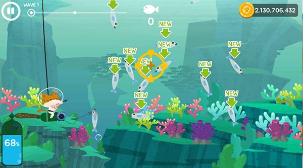 2、玩家要控制一只猫咪,进入到深海中进行冒险和捕鱼,鱼类繁多你要灵活且合理的运用不同的工具进行捕捉,除此之外还要利用不同的道具,游戏拥有接近80多种不同的鱼类,玩家要想办法捕捉,拥有海马、章鱼甚至是鲨鱼等内容。