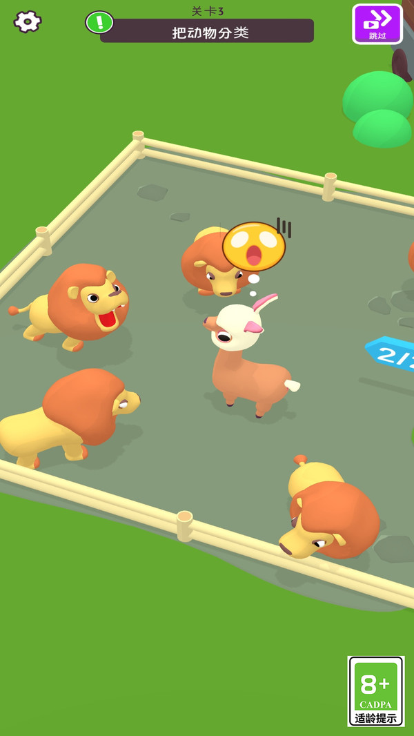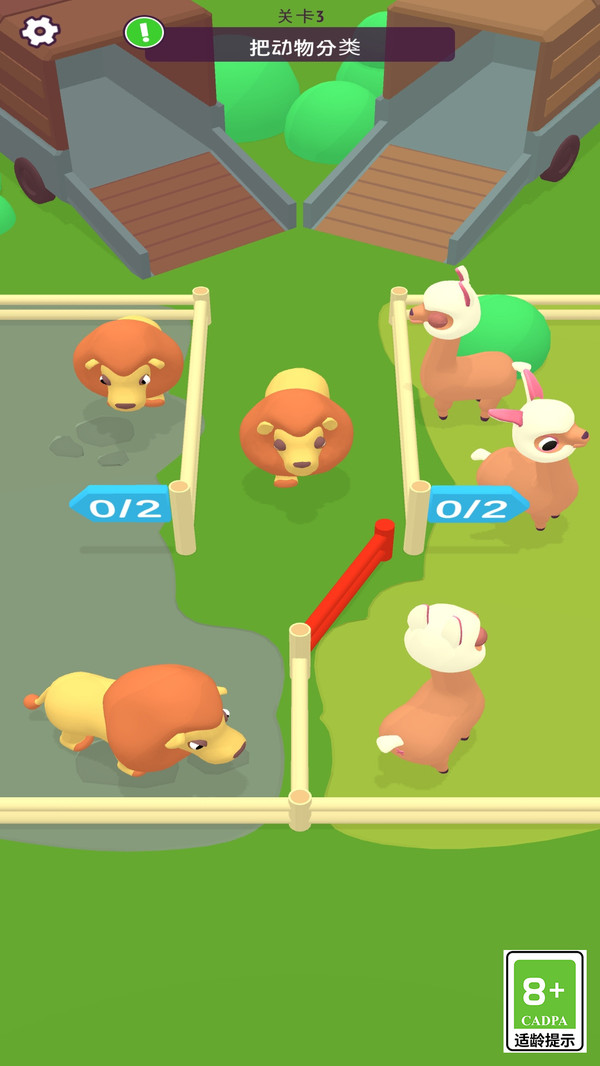 2、动物分类关卡中提前规划护栏分区,按哺乳、爬行等类别快速引导动物,减少来回调整次数。