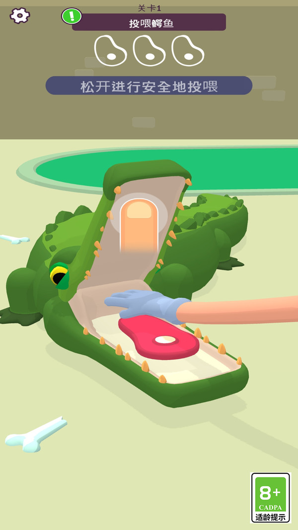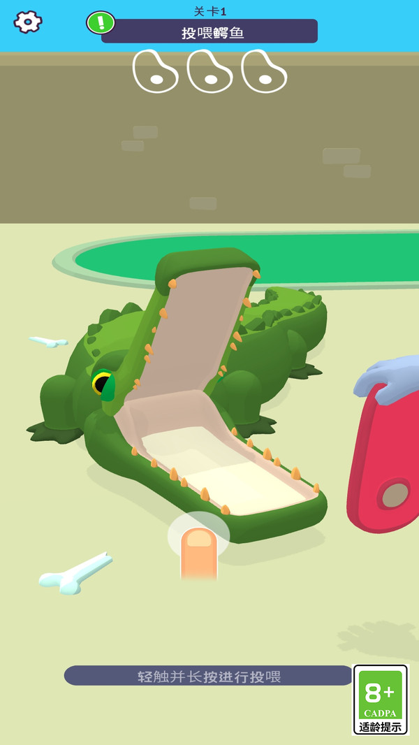 3、投喂鳄鱼时轻触并长按屏幕控制食物投放,待鳄鱼张嘴稳定后再松开,避免食物掉落浪费。