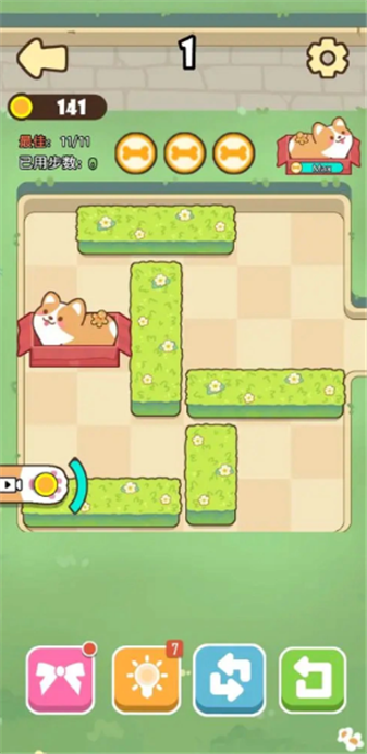 2、玩家需要合理规划每一步移动,用最少的步数帮助小狗顺利到达出口,十分锻炼大脑。