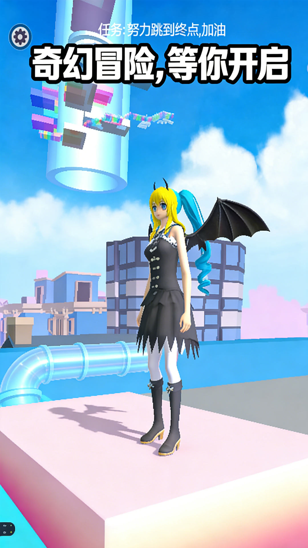 1、进入游戏后可直接开启挑战或先更换装扮,从海量服饰、配饰中选择,打造专属校园跑酷造型。