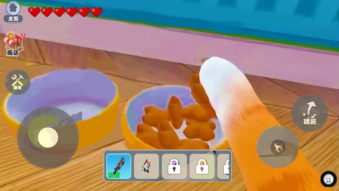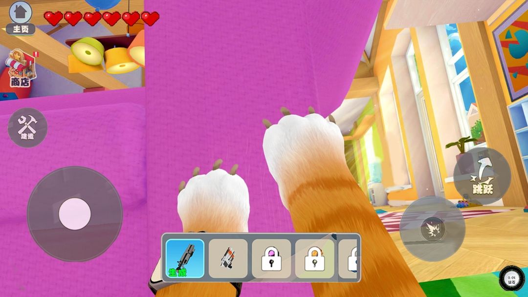4.在宠物模拟器中自由跑动.与环境互动,通过碰触物品或与人互动获得积分,积累足够积分即可解锁新关卡,挑战最高分与全成就。
