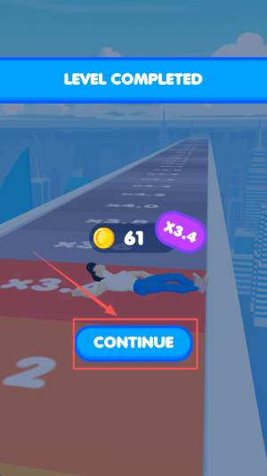 4.胜利晋级:当界面显示“LEVEL COMPLETED”时,点击“CONTINUE”领取奖励并进入下一关。