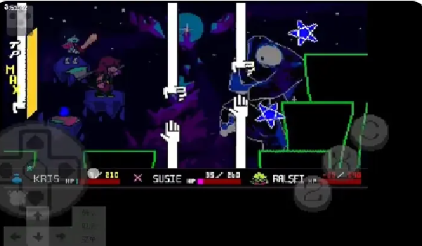 1、玩家可操控Kris、Susie、Ralsei等角色组成队伍,每个角色拥有独特技能和战斗风格。