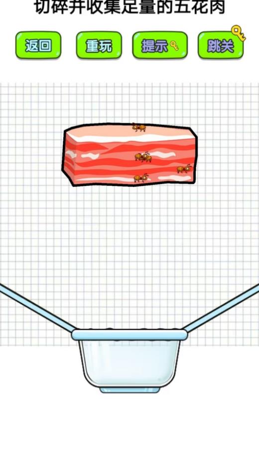 1、进入游戏后查看关卡提示,明确切割目标物品与收集要求,牢记不切到虫子的核心规则开启挑战。