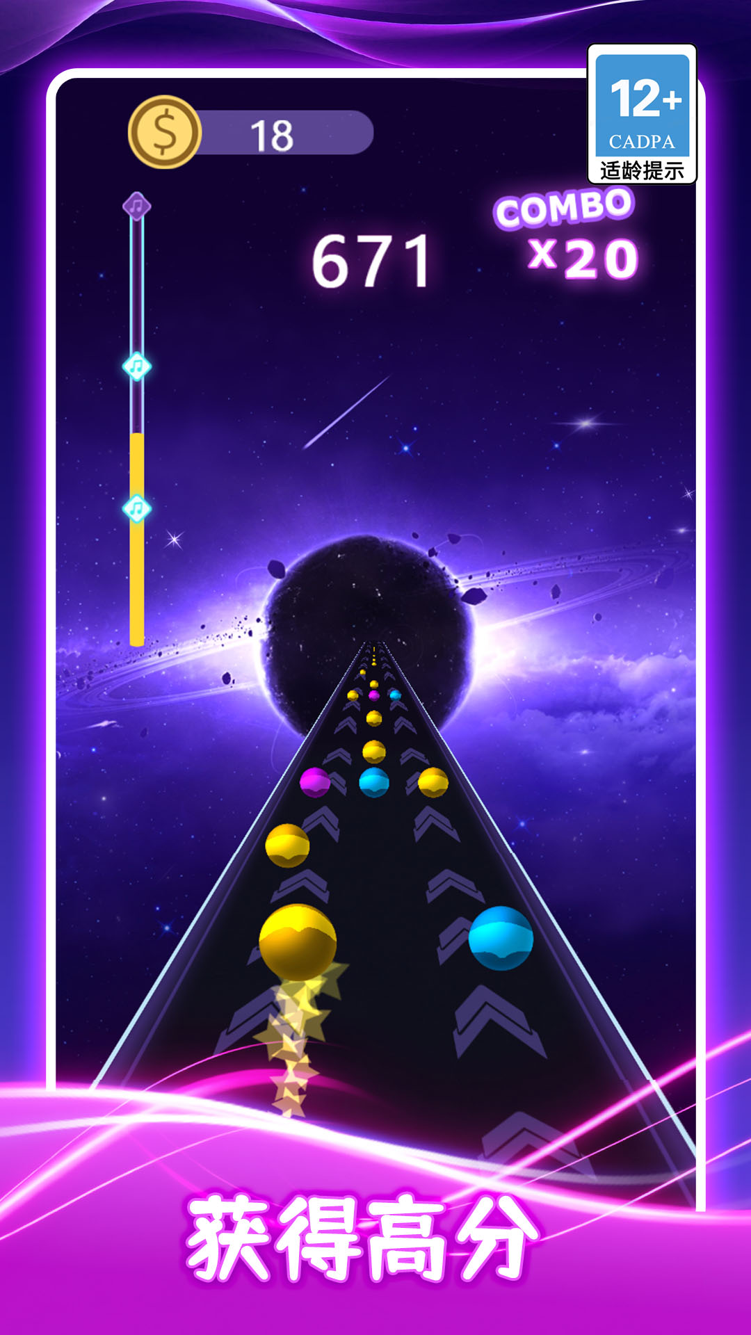 4. 多尝试不同风格的音乐关卡,熟悉各种节奏类型能全面提升对音球移动轨迹和障碍出现时机的预判能力。